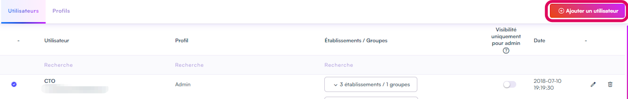 Vous devez également cocher les groupes / établissements auxquels l'utilisateur aura accès. Si vous cochez un groupe qui comprend trois établissements, ceux-ci sont automatiquement cochés. Ensuite, cliquez sur "Valider".