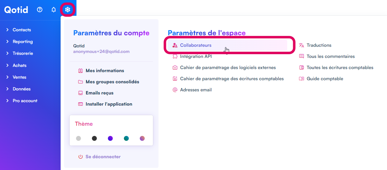 Pour cela, cliquez sur "Paramètrage espace" en bas à gauche. Puis sur "Collaborateurs"