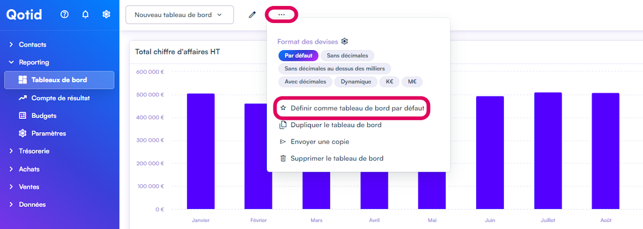 Pour cela, il suffit de cliquer sur : "Plus d'actions" puis "Définir comme tableau de bord par défaut".