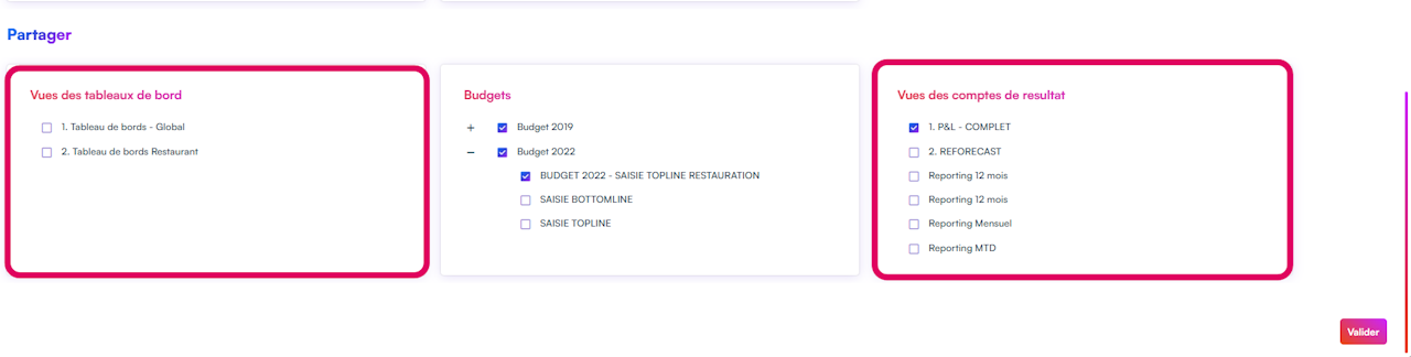 Si une vue de votre compte de résultat ou dashboard est déjà définie par défaut (Lien vers guide sur comment définir une vue par défaut lors de la prochaine étape) et que vous souhaitez la partager avec d'autres collaborateurs attachés à un nouveau profil, il faut mettre à jour les autorisations du profil concerné.