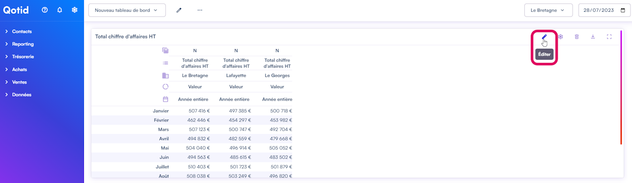 Pour cela rien de plus simple, cliquez à ce moment sur le crayon en haut à droite de votre graphique