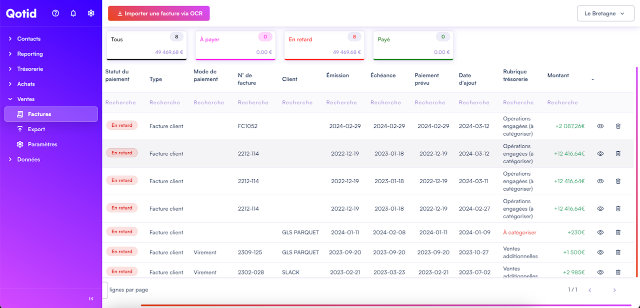 Cliquez sur le bouton "Ventes" dans le menu principal à gauche de la page.