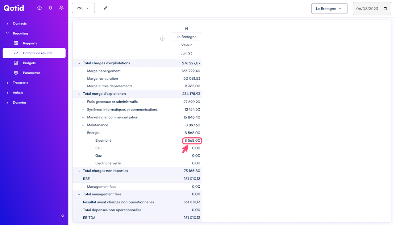 Lorsque vous êtes sur le module "Compte de résultat" vous pouvez écrire des commentaires sur les rubriques de votre reporting. Pour cela, il suffit de cliquer sur le montant que vous souhaitez commenter.