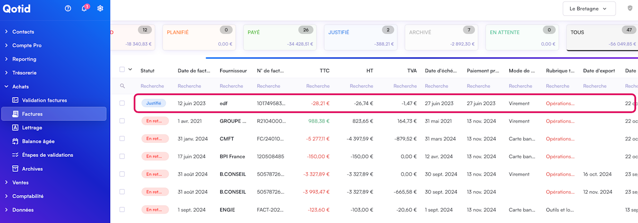 Ensuite, cliquez sur "Factures" puis sur n'importe quels champs de la facture que vous souhaitez visualiser.