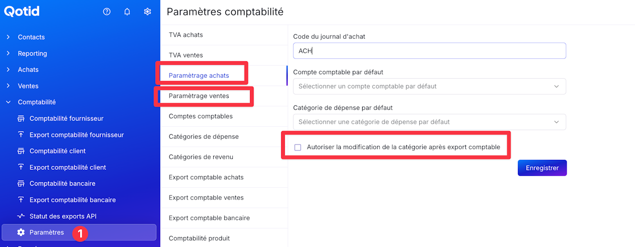Cocher la case : Autoriser la modification de la catégorie après export comptable