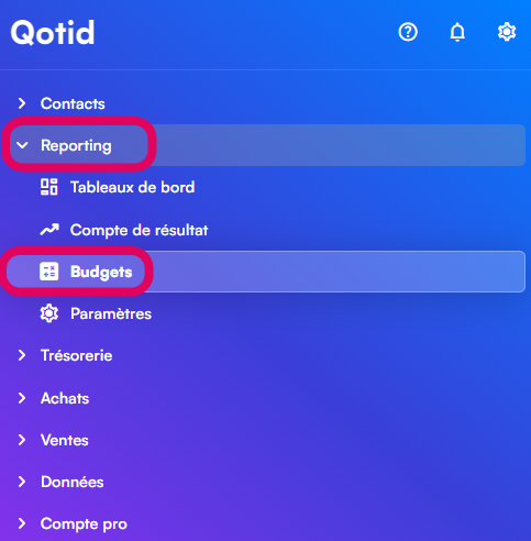 Pour commencer cliquer sur "Reporting" puis "Budgets".