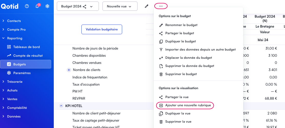Pour cela, vous devez vous rendre dans votre module budget et sélectionner le budget sur lequel vous voulez ajouter le nouveau compte.