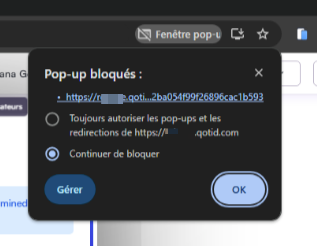 Dans ce cas il faut bien sélectionner le champs : Toujours autoriser les pop-ups et les redirections de https://www.qotid.com