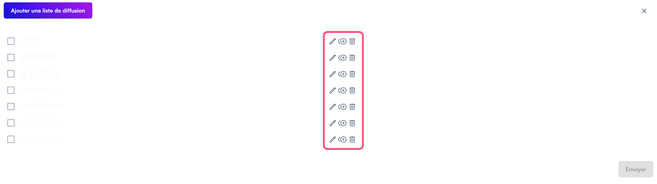 Ici, vous pouvez visualiser l'ensemble des listes créées. Vous avez trois possibilités concernant les listes existantes, vous pouvez les modifier avec le crayon, les dupliquer, ou les supprimer.