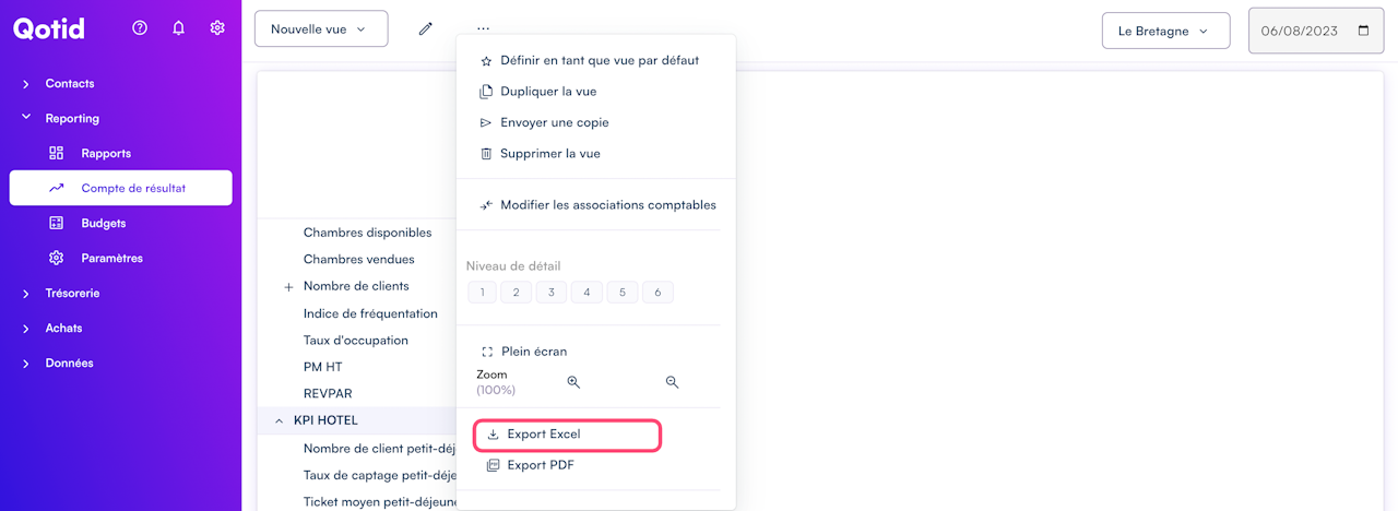 Pour exporter vos données au format Excel, il suffit de sélectionner "Plus d'actions" puis "Export Excel".