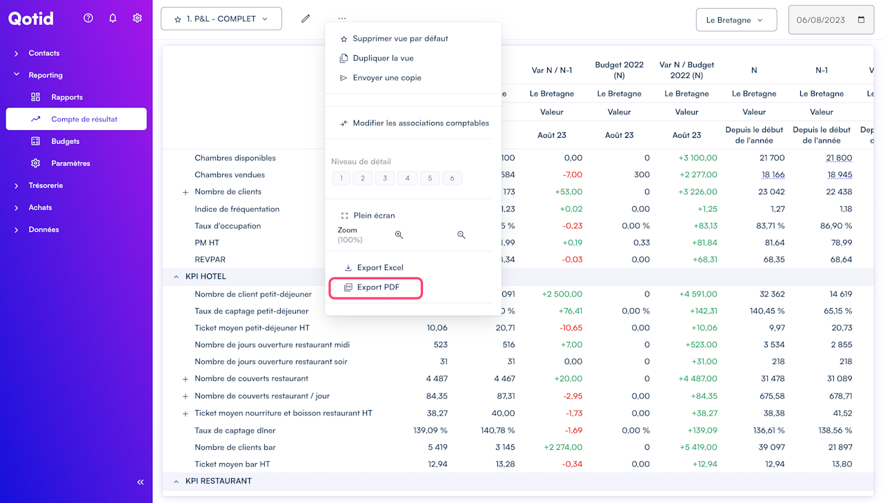 Il peut être intéressant pour vous d'exporter vos données P&L sous format PDF. Pour cela rien de plus simple !