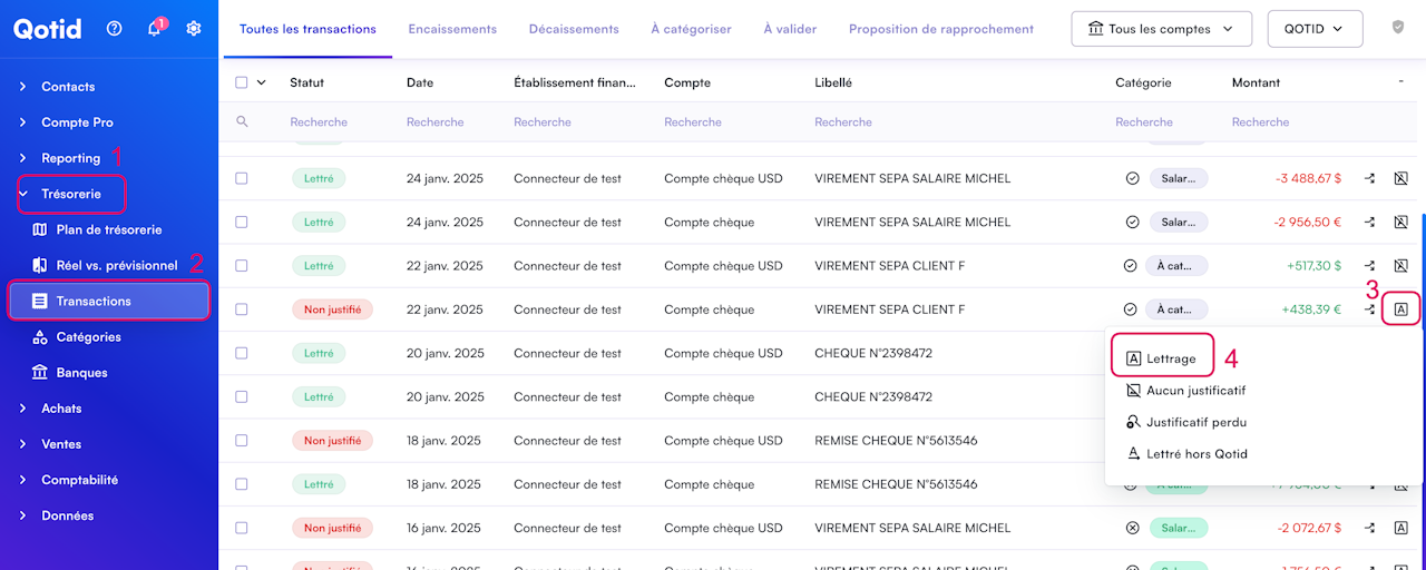 Enfin, cliquez sur "Lettrage" dans la liste qui s'affiche.