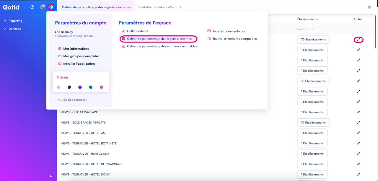 La liste de tous vos cahiers de paramétrages