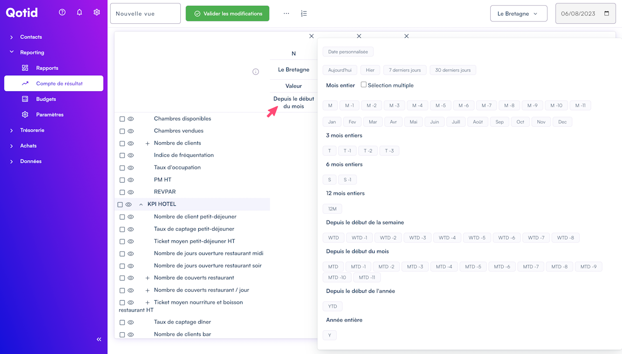 Depuis votre compte de résultat, vous avez la possibilité de sélectionner des plages de date sur des mois entiers de manière statique ou dynamique ou faire un mix entre statique et dynamique. Nous vous expliquons tout cela :